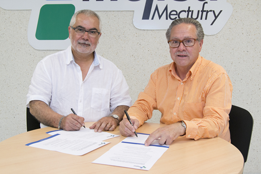 Las empresas Servigelat Coop. V., y Mecánica Jijonenca S. A. (MEJISA), a través de sus representantes Marco Miquel y Francisco José Sirvent respectivamente, se han reunido en las instalaciones de Mejisa para la firma de un acuerdo comercial.